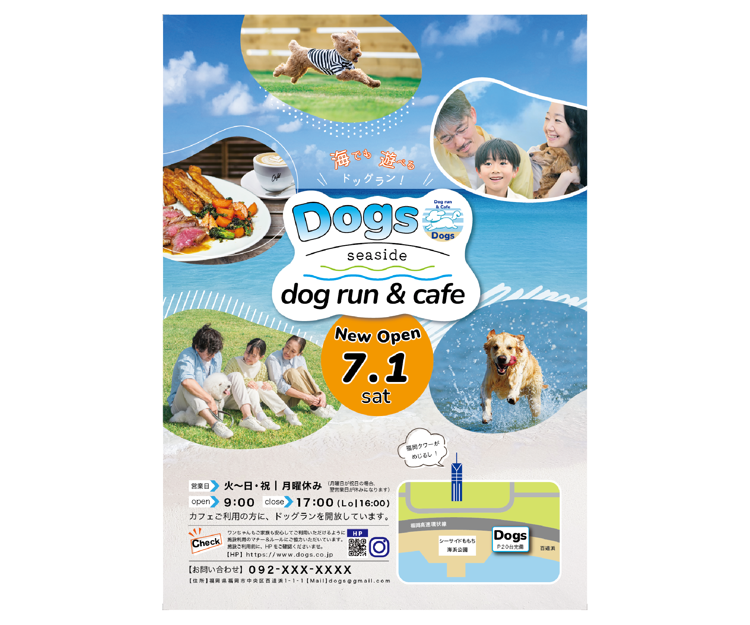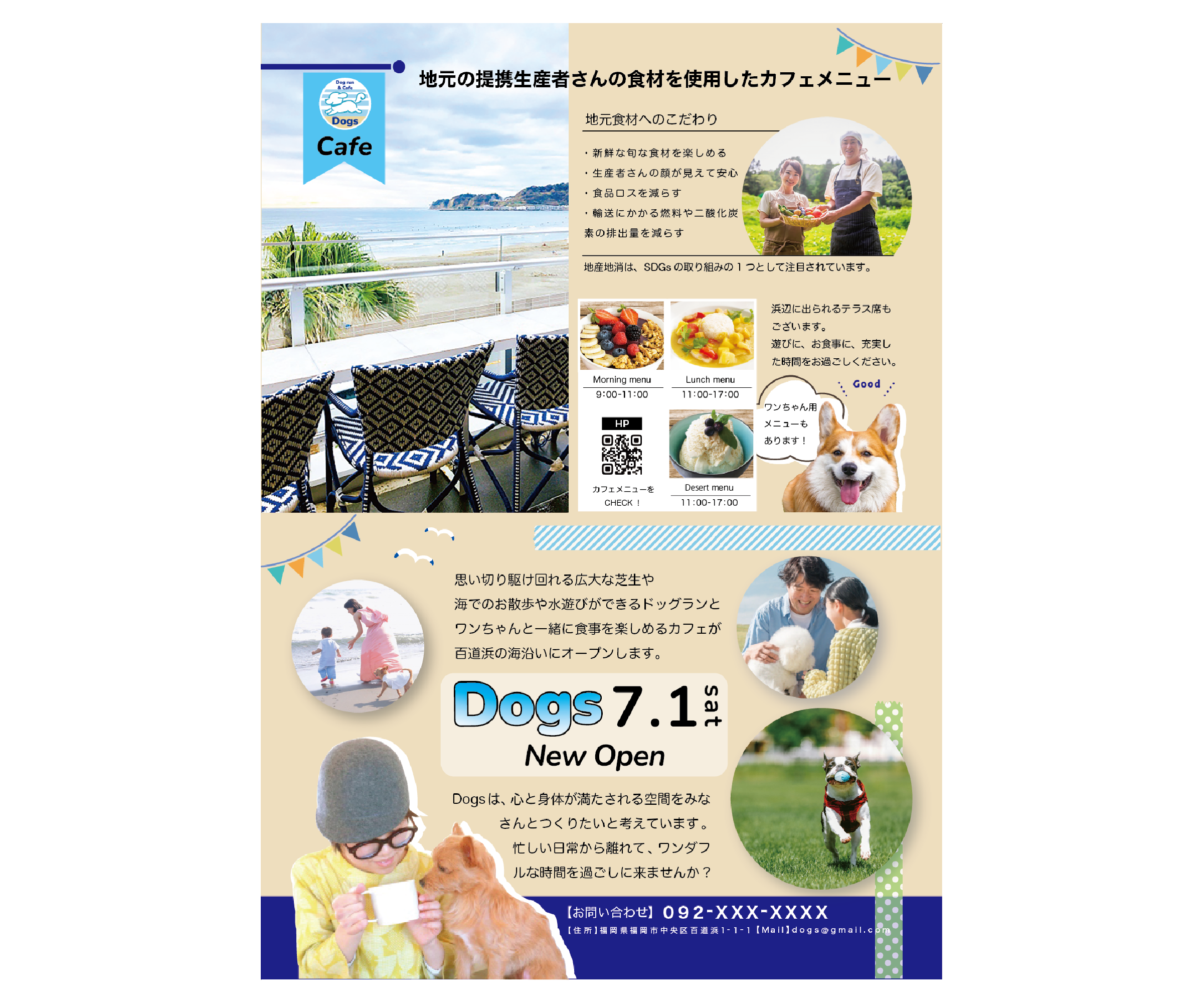 生徒2人組で、それぞれクライアント役とデザイナー役として、NEWOPENするドッグラン&カフェのフライヤーを制作